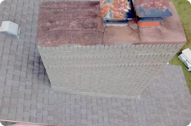 As with any structure, your chimney can run into a few problems over time. Some things to be wary of with your chimney can range from exterior to interior damages. Areas of your chimney to pay attention to are the crown, cap, surrounding roof flashing, firebox, damper, inner liner, joints, and masonry. It’s important to know that your chimney will develop a build-up of soot or creosote with frequent use which can cause fires due to their flammability. With creosote, your chimney won’t be properly vented and you can develop carbon monoxide poisoning. Other issues may include cosmetic damages such as visible cracks in the masonry or eroding mortar. The damages that can be imparted on your chimney and surrounding roofing materials can be numerous, here are some examples as to what conditions may point to the need for chimney repair.