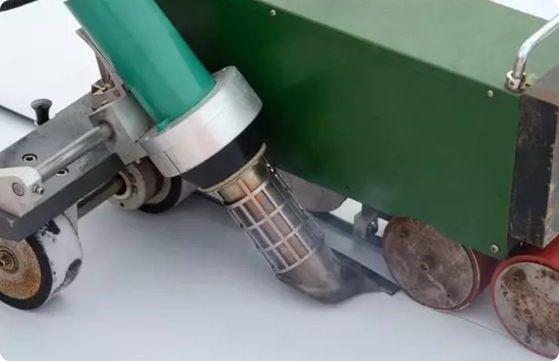 Sealing machine for heat sealed thermoplastic membrane roofing.