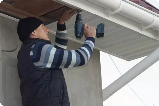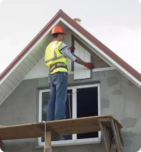 Contractor installing siding and soffits on a house